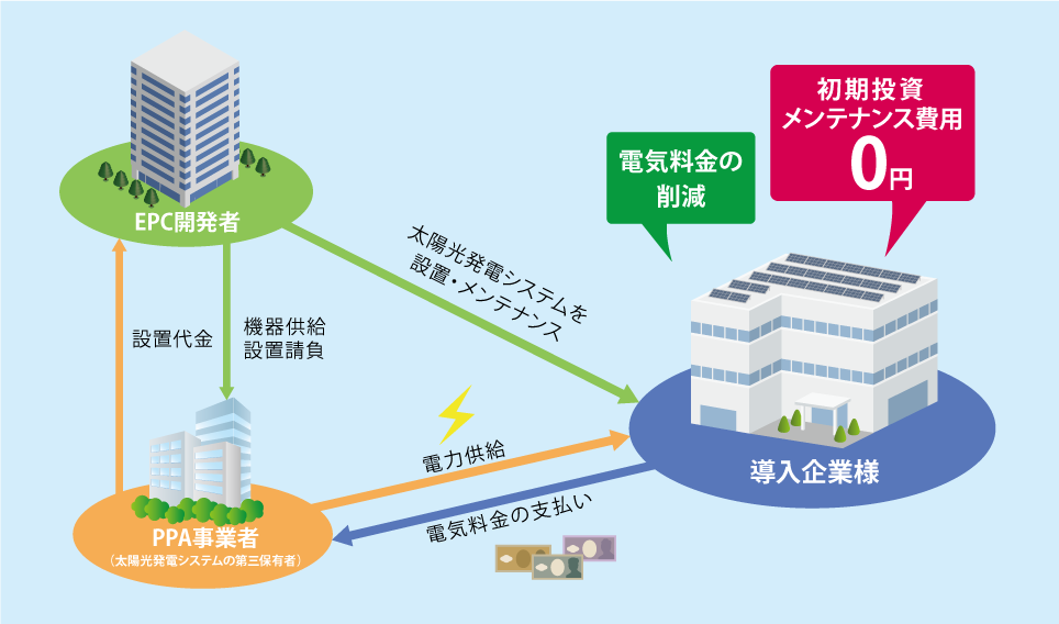 「初期投資ゼロ」で再生可能エネルギー由来の電気を利用できます